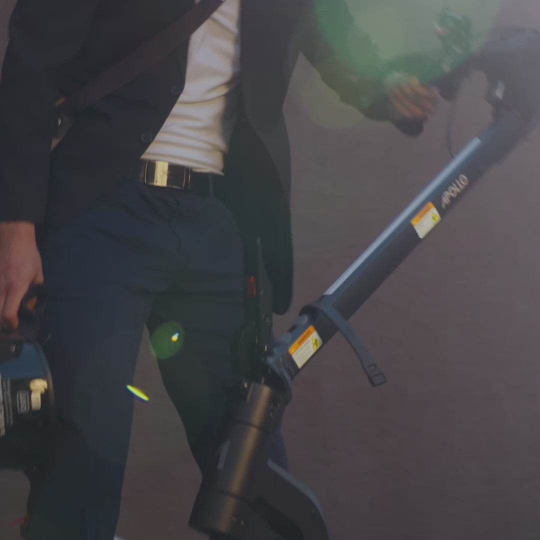 Apollo Scooters. are designed to be used and operated by adults (+18 years old). Consult your physician before purchase and use. It is the responsibility of the customer to familiarize themselves with local regulations surrounding electric scooters. Any fines due to illegal or unauthorized use are the responsibility of the customer.